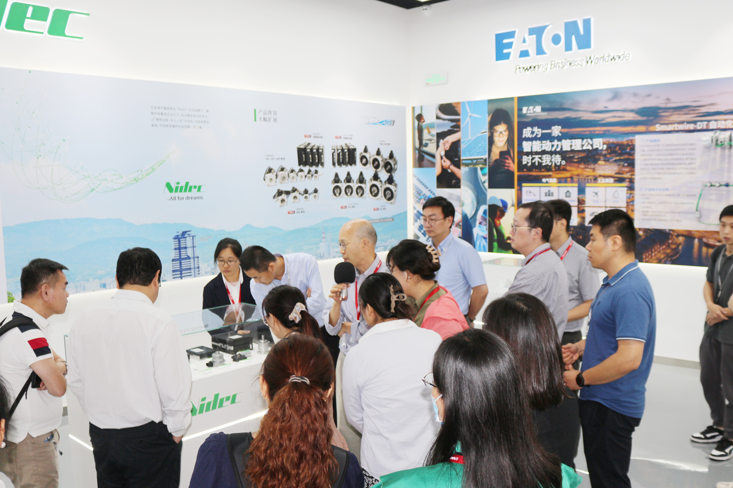 大家正觀賞三菱電機(jī)展臺(tái)的工業(yè)自動(dòng)化機(jī)器人工作